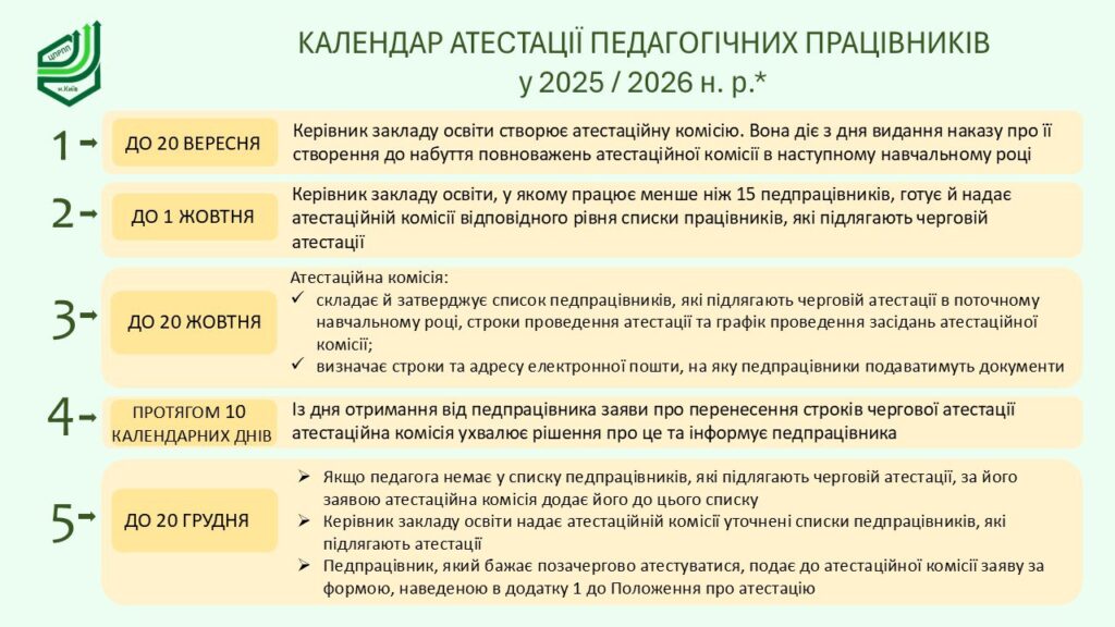 Документи педагогічних працівників, які підлягають черговій атестації приймаються до 20 жовтня 2025 року включно