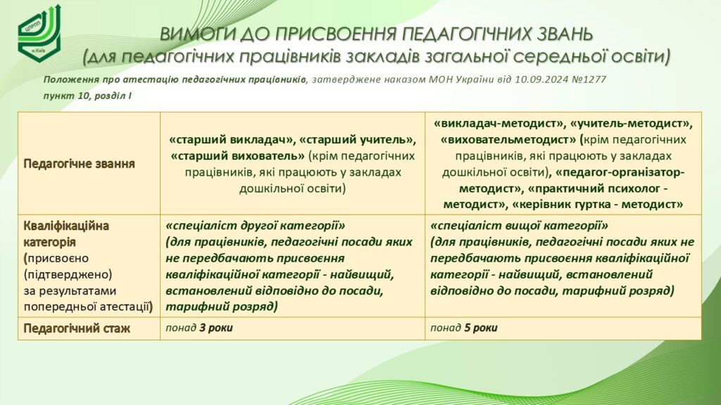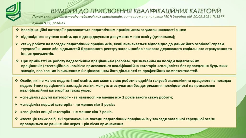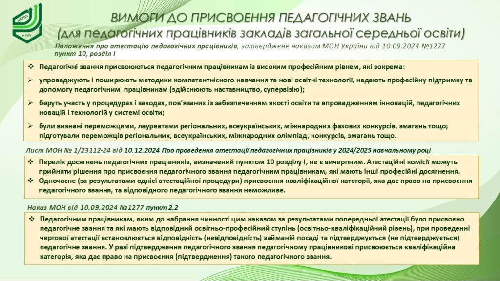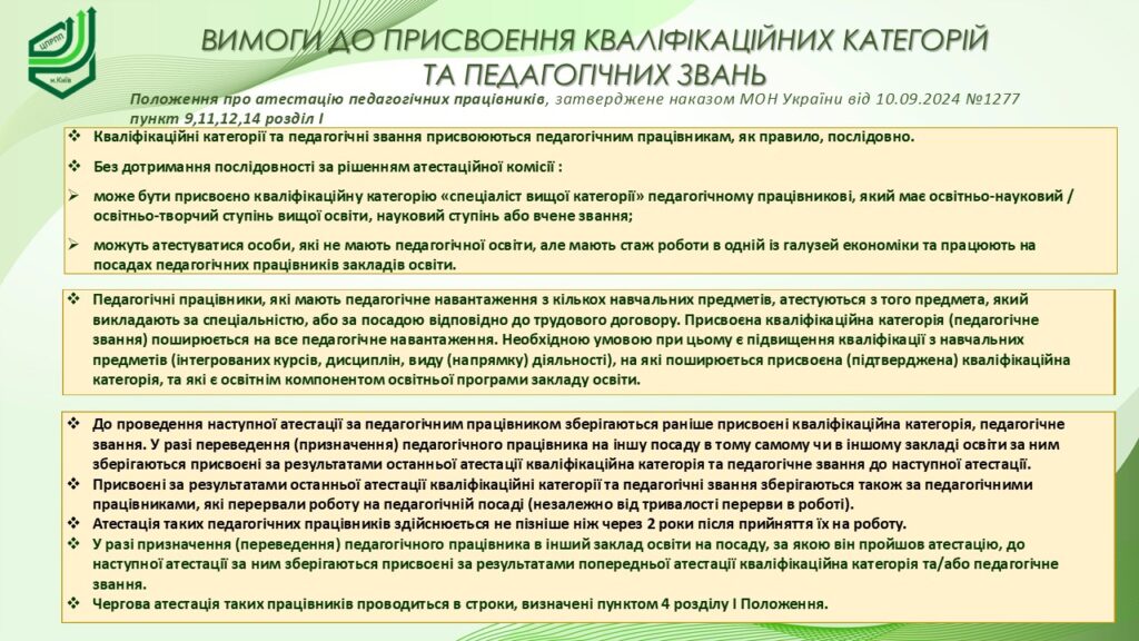 Положення про атестацію педагогічних працівників (у редакції наказу МОН № 1277 від 10.09.2024 року)